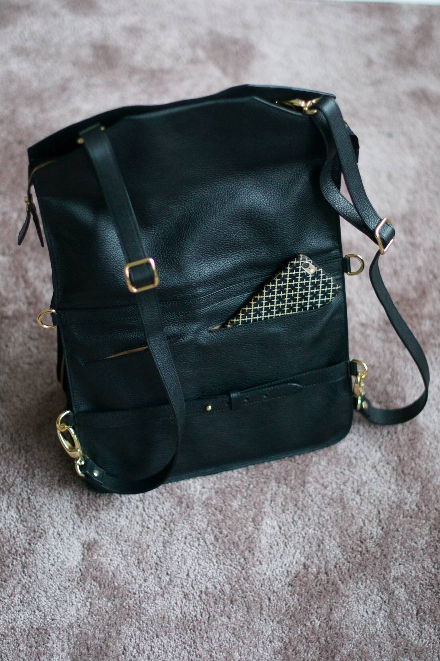 Det är en axelremsväska som blir en tote som blir en datorväska som blir en ryggsäck som blir en clutch, ja eller tvärt om. Design, funktion och kvalité i ett.