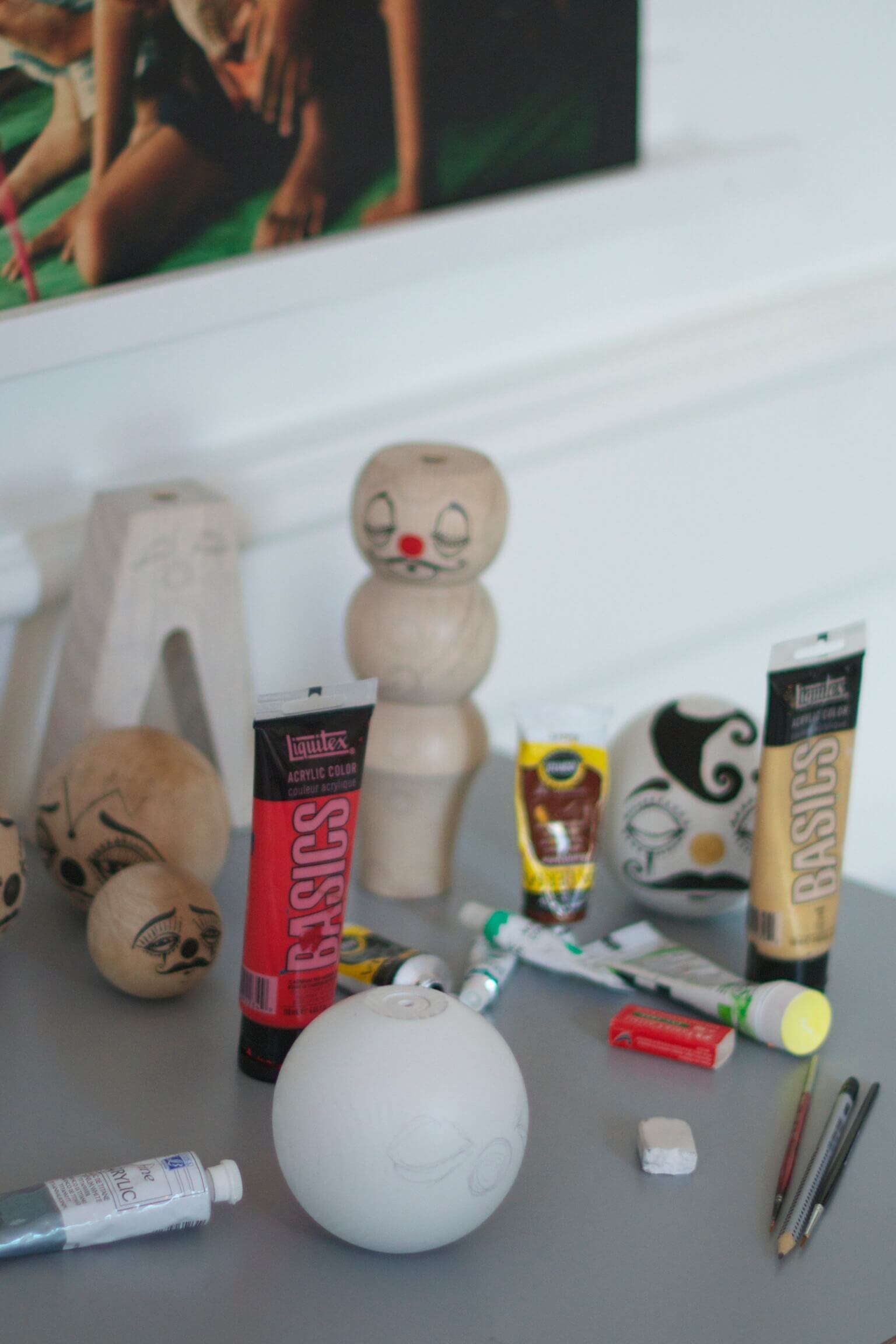 Prettypegs tillverkar snygga möbelben som Jenny von Döbeln från Mini empire målar fina clowner på som sen säljs hos Miniroom där allt överskott går till organisationen Clowner utan gränser.