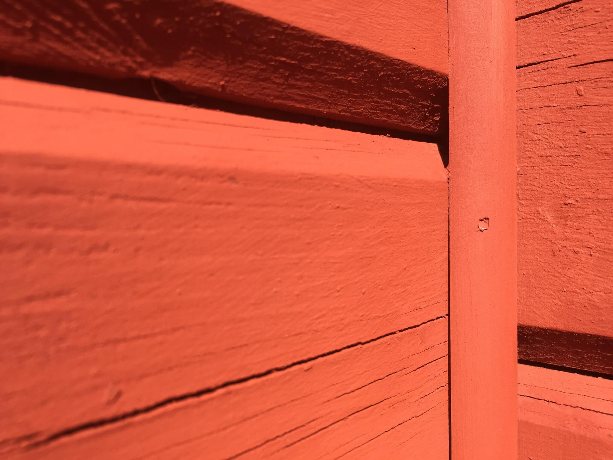 Med ett landställe så kommer också sysslor och underhåll som behöver göras varje år. Vår fina stuga har en knut mot söder och vattnet som pinas året om av väder och vind. Nu har jag satt latexfog och en kvartstav för att skydda huset lite extra just där.